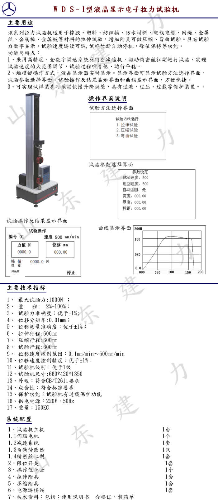 订购:WDS–1型液晶显示电子拉力试验机