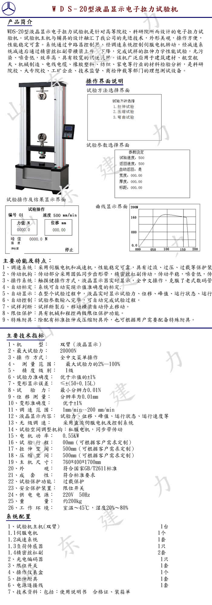 订购:WDS–20型液晶显示电子拉力试验机