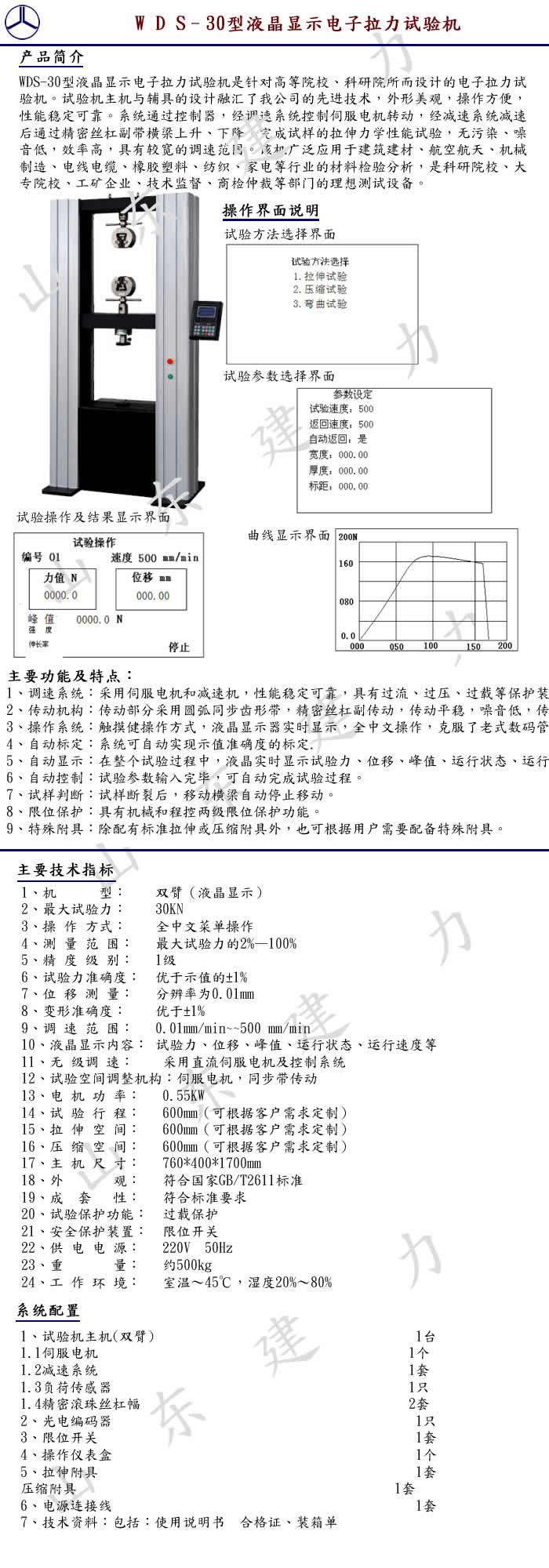 订购:WDS–30型液晶显示电子拉力试验机