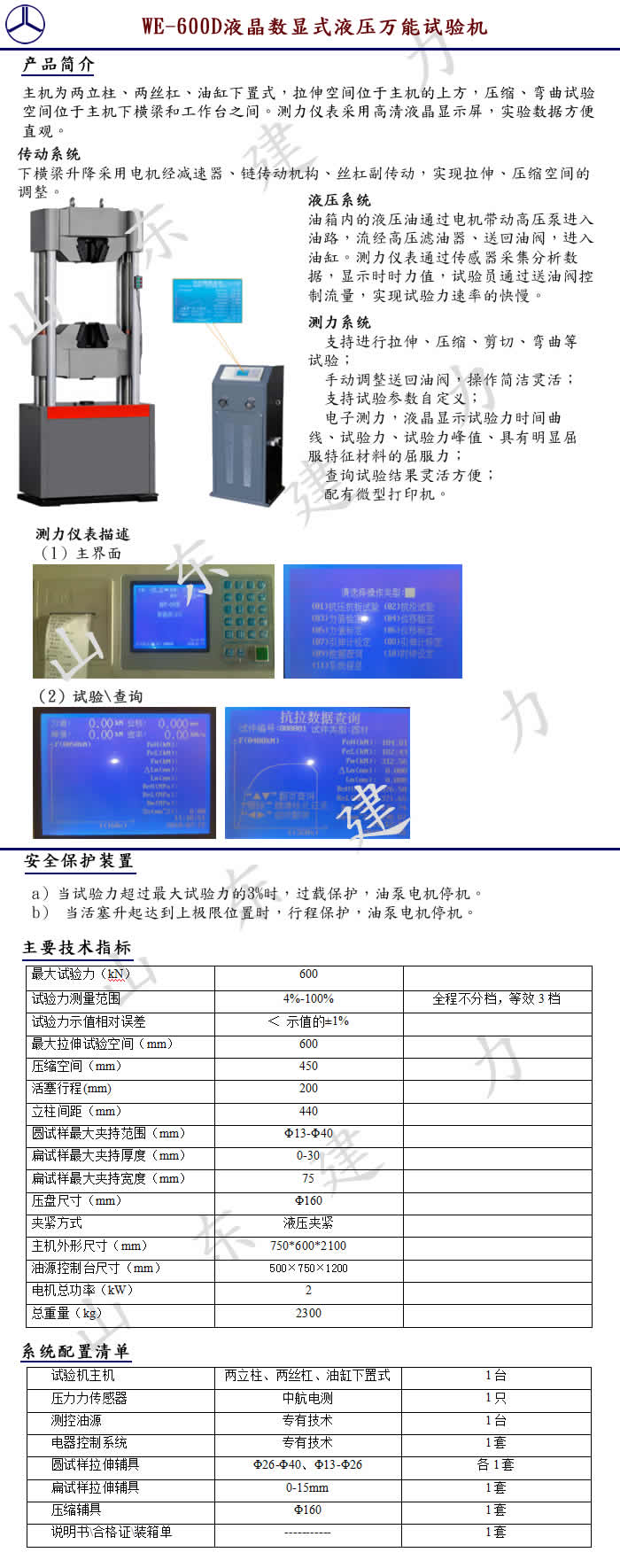 订购:WE-600D液晶数显式液压万能试验机
